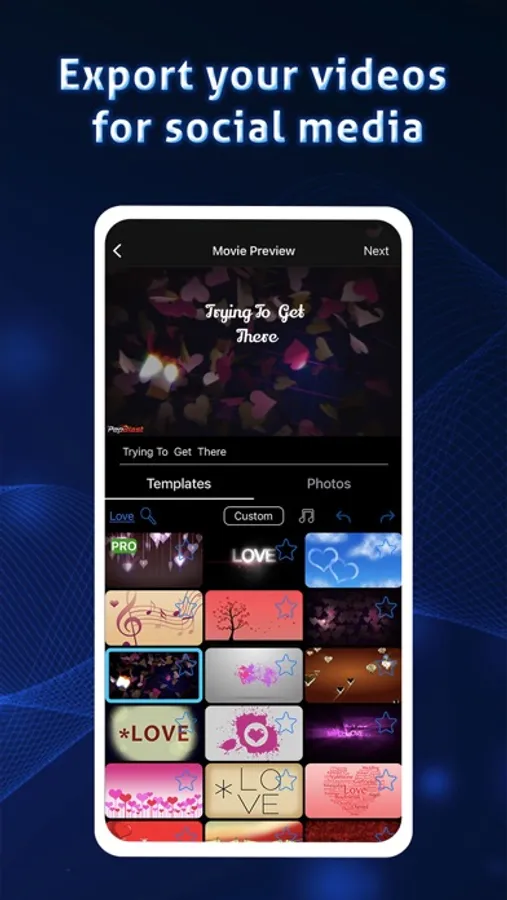 * Export the music video with original song to standard video for Instagram, YouTube, etc.