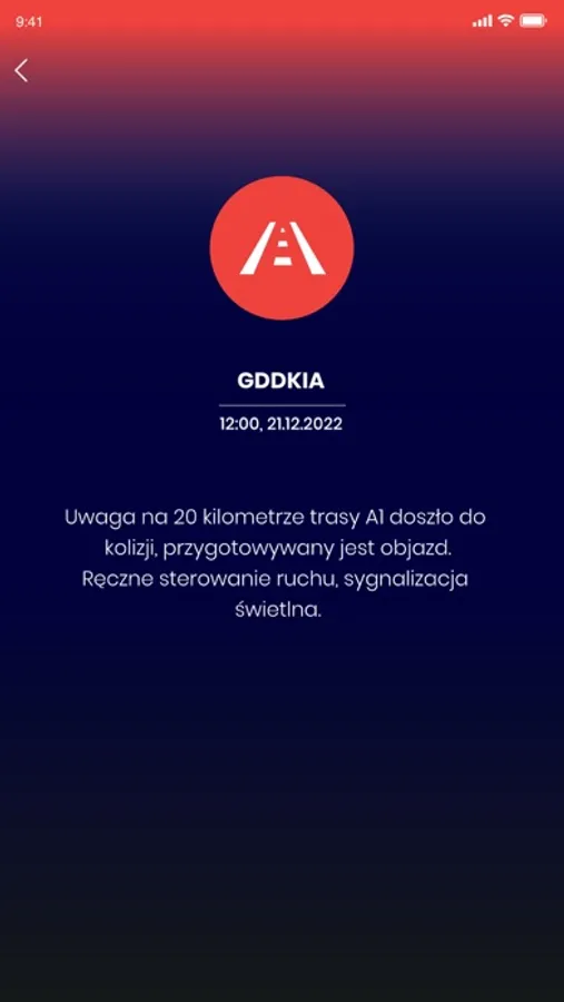 2. Odbierać powiadomienia o wydarzeniach drogowych w Twojej okolicy z GDDKiA