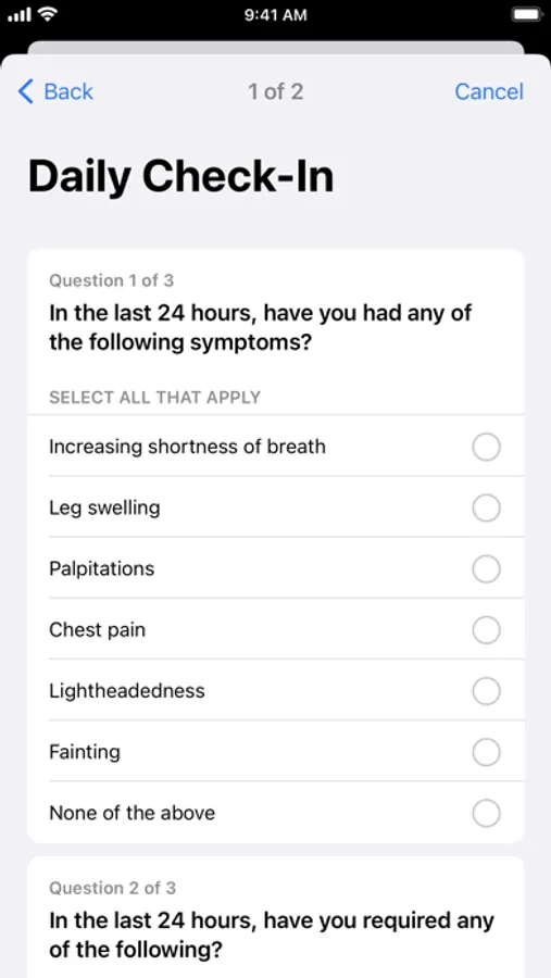 The study will investigate how physiological signals from Apple Watch - such as heart rate and the new blood oxygen feature - can help with better management of heart failure with the goal of driving better clinical outcomes for heart failure patients. This app leverages HealthKit to read and write study heath data such as body weight to Health app. It also uses CareKit to schedule and display tasks requested by the study.