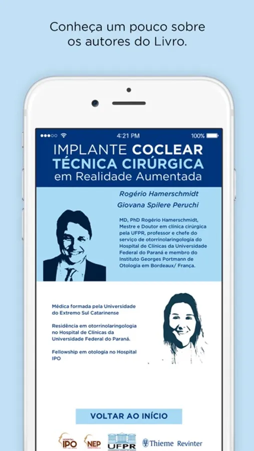 O IPO - Implante Coclear RA é um aplicativo que usa tecnologia de Realidade Aumentada para complementar o conteúdo presente no livro "IPO Implante Coclear" escrito pelo Doutor Rogério Hamerschmidt e pela Doutora Giovana Spilere Peruchi, e publicado pelo IPO-Instituto Paranaense de Otorrinolaringologia em 2020. Essa publicação recebe atualizações digitais de cirurgias captadas em alta resolução, editadas e auxiliadas por computação gráfica para padronizar o ensino e agregar valor digital à publicação impressa.