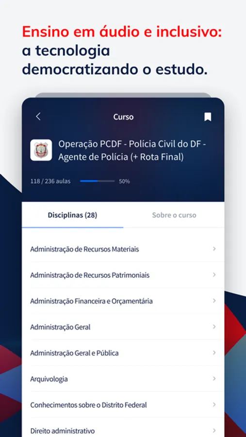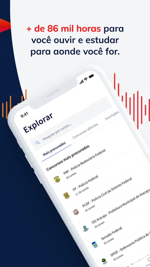 Cursos e legislação para todos os concursos públicos e OAB em mais de 86 mil horas em áudio, com fala humanizada, para estudar de onde você estiver: enquanto dirige, no ônibus, na bike, na academia ou ao mesmo tempo que faz outras tarefas. Sua melhor chance de eliminar o tempo perdido. Ou seja, o melhor da tecnologia para você estudar em qualquer lugar!
