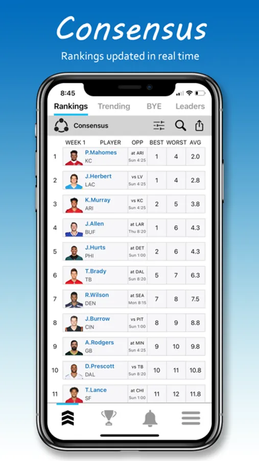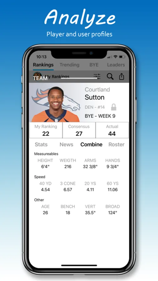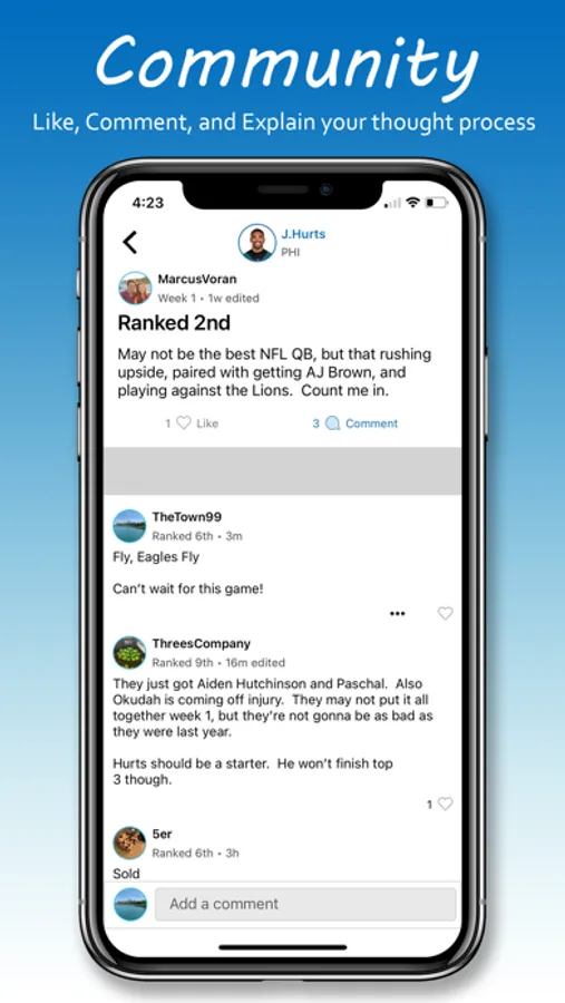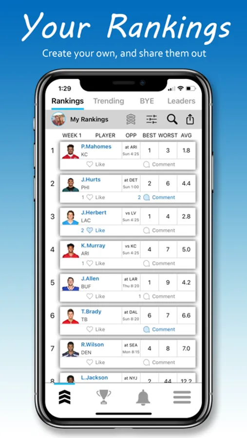 RancUp is an app that has made the process of setting your own Fantasy Football Rankings as fast and easy as possible. With our ability to track accuracy, you can also see how you or anyone else finishes on the leaderboard, and who the true experts are. You can also explain the method to your genius for each ranking, along with comment on anyone else's.