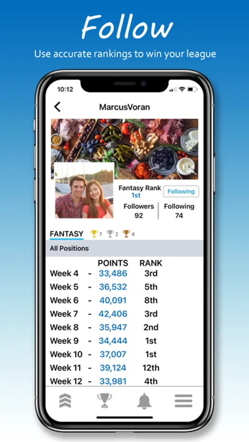 Easily follow anyone's rankings and verify their accuracy for every pick, from every week.