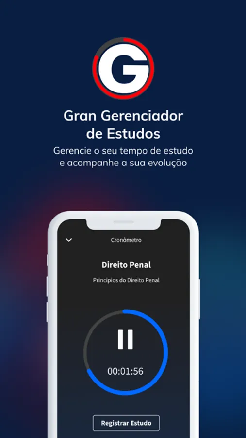 O App Gran Gerenciador de Estudos possibilitará registrar seus horários de estudo para concursos de modo 100% personalizado, ativar alarmes, analisar o histórico por meio de gráficos e ter controle total do seu tempo e desempenho.