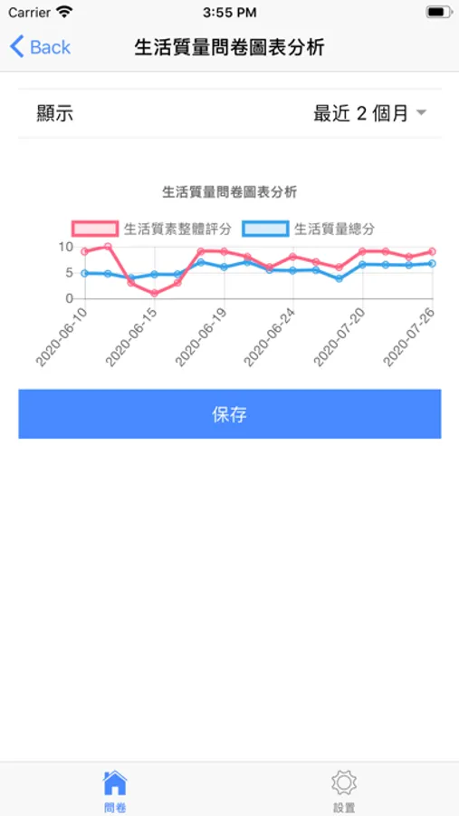 - 清晰圖表顯示近六個月的疼痛及生活質量狀況,幫助醫護人員了解你的情況
