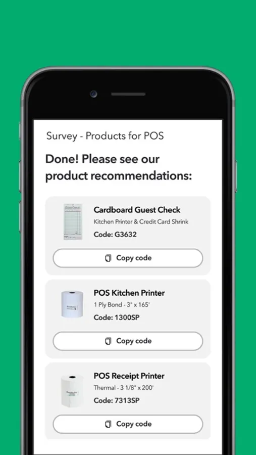 This sales app takes you through a brief survey that asks about your customers’ operations before providing product suggestions based on your input.