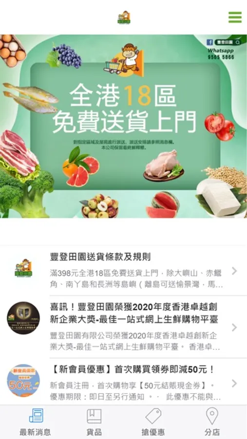 足不出戶,便可享受到一站式生鮮食材遞送服務! 豐登田園整合進口蔬果,香港本地新鮮食材,内地特色農產品以及其他優質生活用品,為全部客戶送貨上門,提供便利的一站式採購服務。