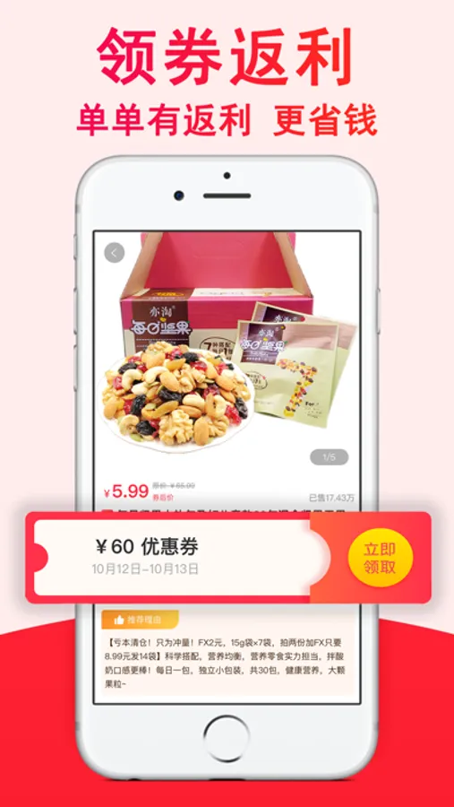 “买东西可以领优惠券,还可以返利,后悔之前没用这个,能省好多钱”