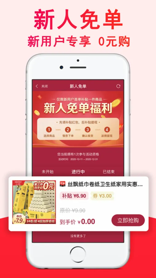 新人使用即享0元免单,还送新人大红包。各种省钱快报资讯,让你网购省上更省~