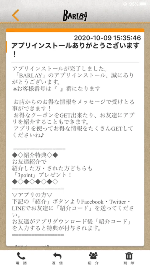 BARLAYのアプリをSNSを通じてお友達に紹介する事ができます。