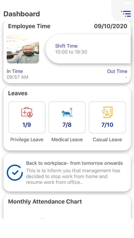 Our smart Face Recognition solution works on a no-touch technology and that improves employee security and safety. Our smart system used to calculate attendance automatically by recognizing the facial dimensions. The system gives Real-time data for quick processing and reporting.