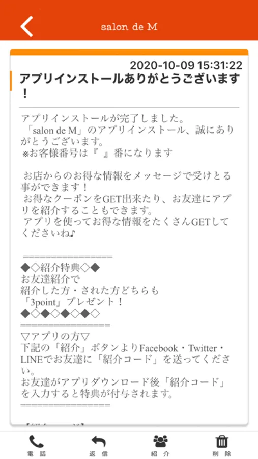 salon de MのアプリをSNSを通じてお友達に紹介する事ができます。