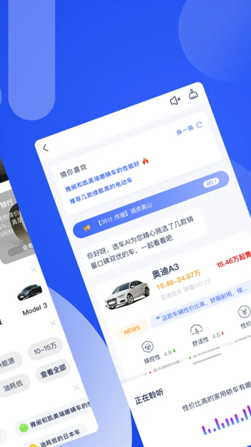 神选车在传统选车看车类APP基础上加入智能语音选车功能,使用户可以更加方便快捷的进行查询、对比和选车;