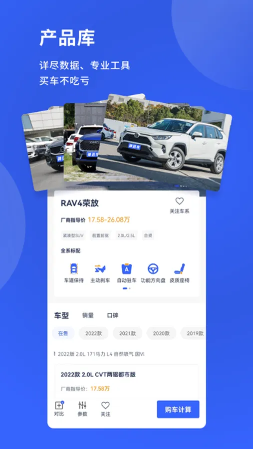 4、巨型汽车产品库,包括全新车款以及它爹它爷爷们的详尽参配;