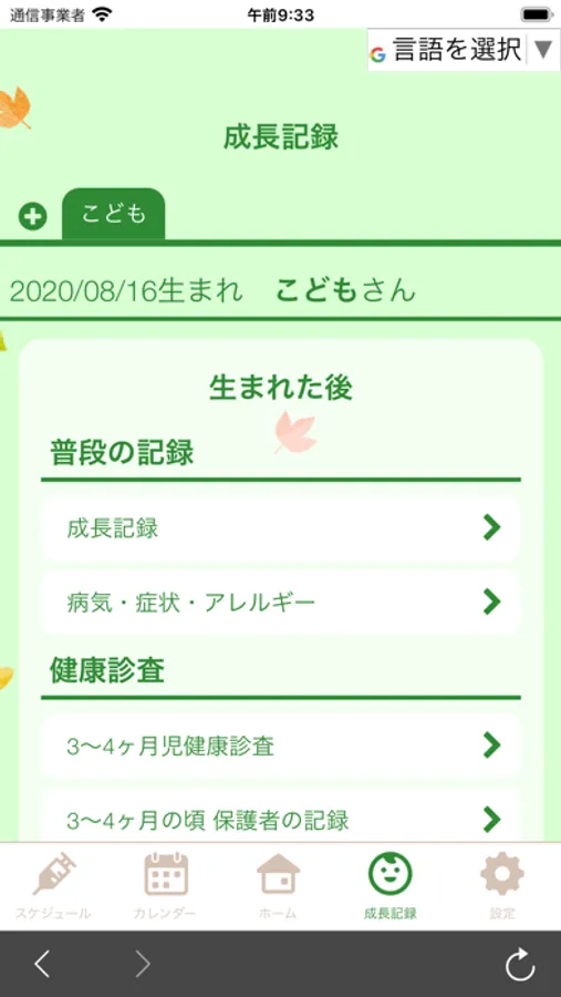 成長の記録/医療機関検索/休日診療/子育て情報