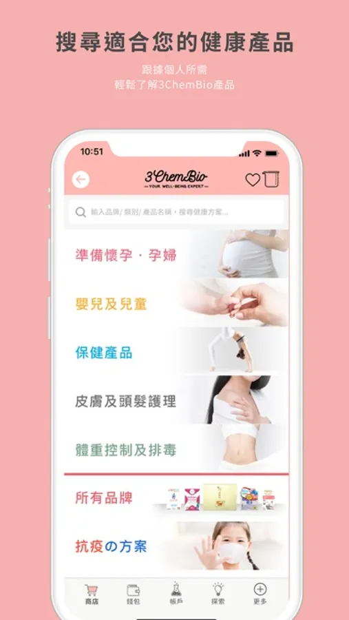 包含所有3ChemBio產品以及藥劑師推薦之營養補充品,輕鬆了解產品資料、主要成分及功能,選出適合自己及家人的補充品,展開健康人生。