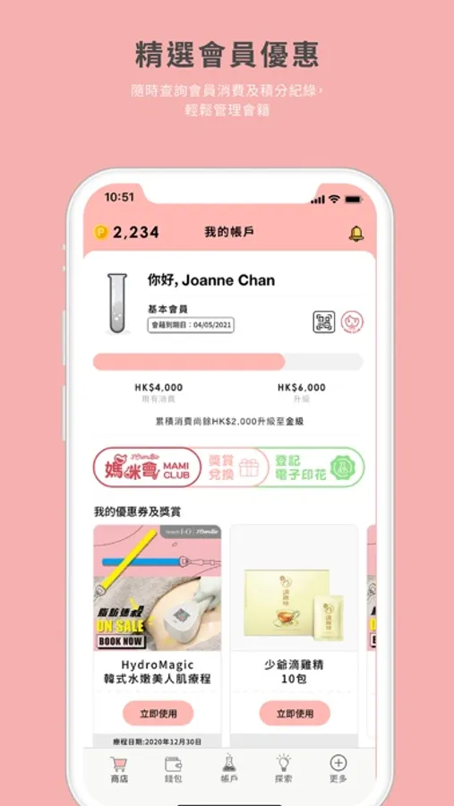 帶來每月最新會員優惠及專屬電子現金券,隨時查詢會員消費及積分紀綠,輕鬆管理會籍。
