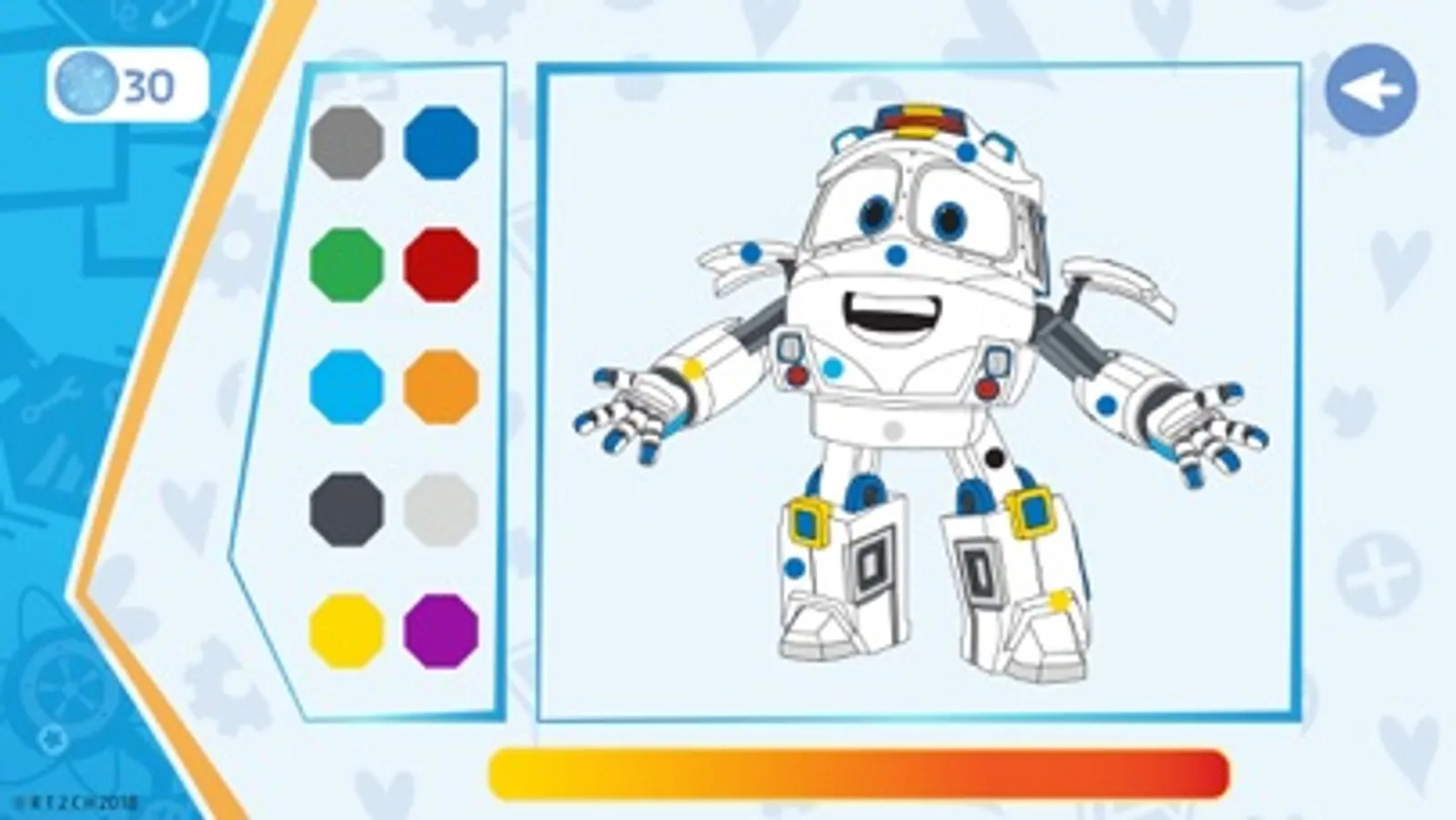 Duke, Mos and Dos have made a big mess again. This time, they have launched a rocket with wind and water energy that has caused a great snowstorm. If we don’t do something immediately, Railworld is in danger. And only the Robot Trains can save it launching a rocket which contains a bit of 4 energies ―Water, Wind, Fire and Light― against the snowstorm.