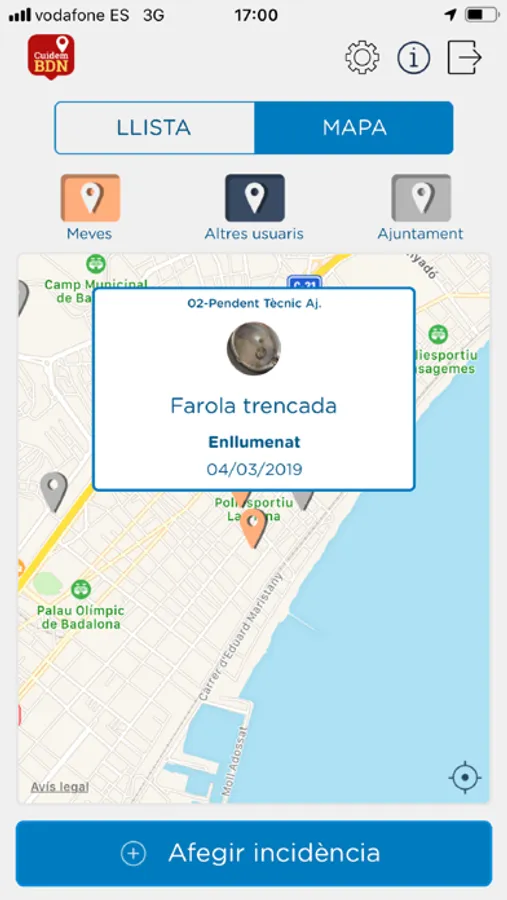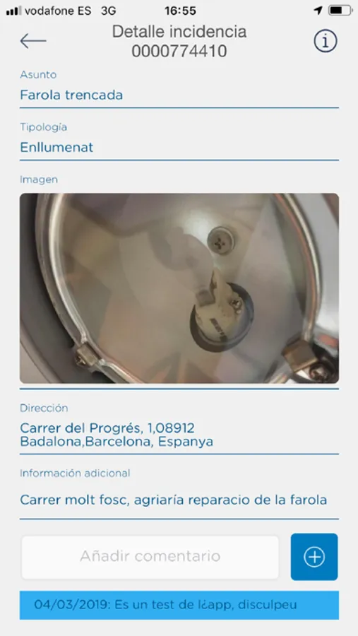 Es poden pujar fotos de les incidències a través de l'aplicació.