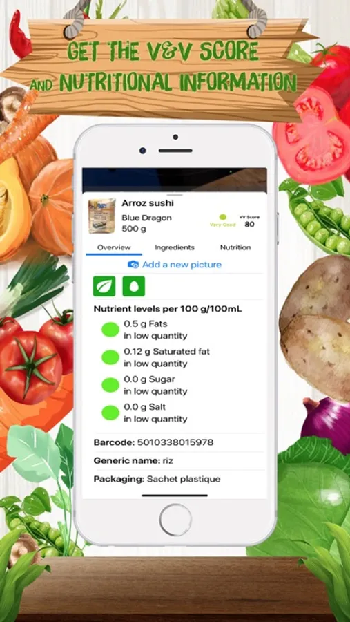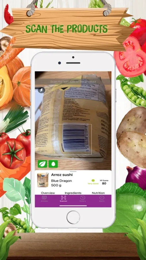Scan the barcode of products to know the V&V Score. The higher the better.