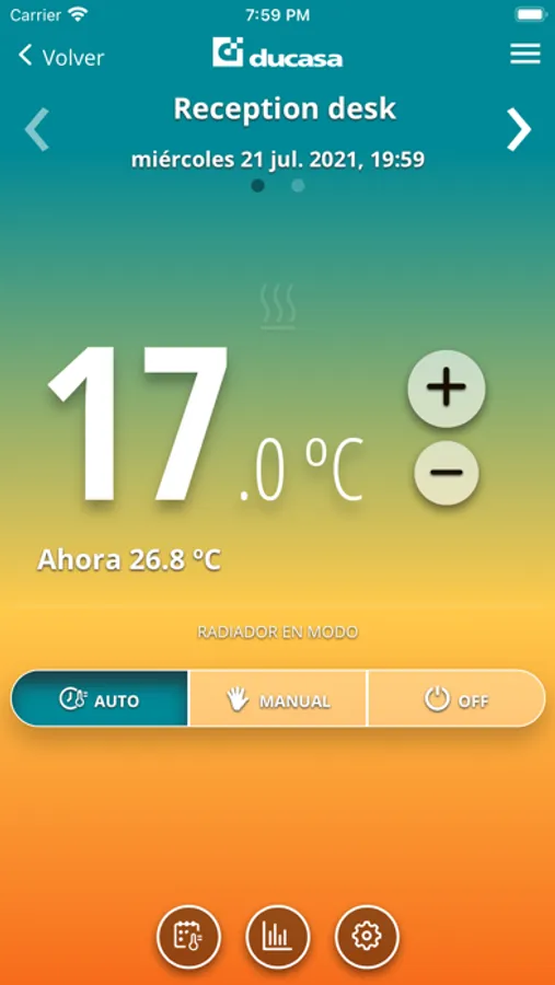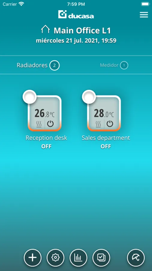 La aplicación “Ducaheat” te permite controlar tu sistema de calefacción desde cualquier lugar y en cualquier momento mediante conexión a internet. Podrás encender, apagar o modificar tus dispositivos (radiadores, medidor de energía) en todas tus viviendas desde la misma cuenta.