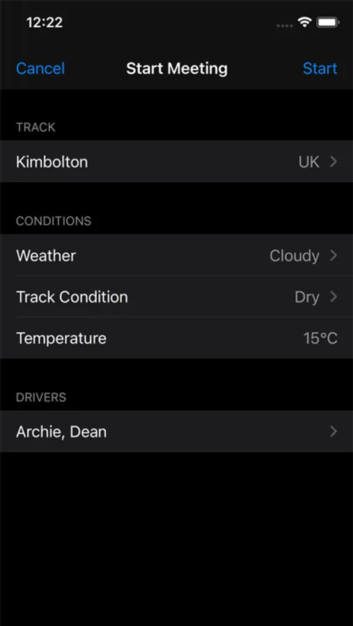 It stores all of the information privately on your phone so that no other team / person can see your lap times. The app also stores against the driver, the track name, kart class, weather and track conditions for each session.