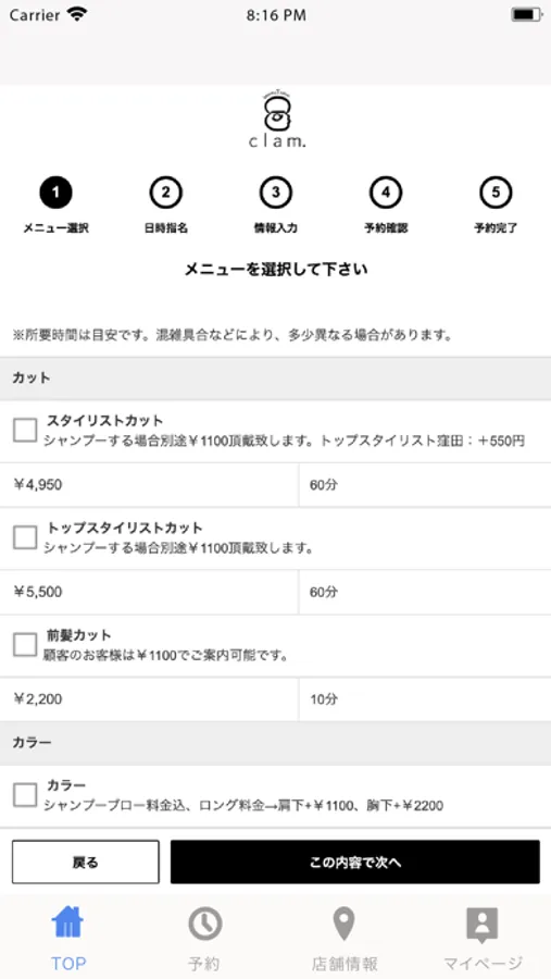 指名予約にも対応しているので担当スタッフのスケジュールを確認してからの予約が可能です。