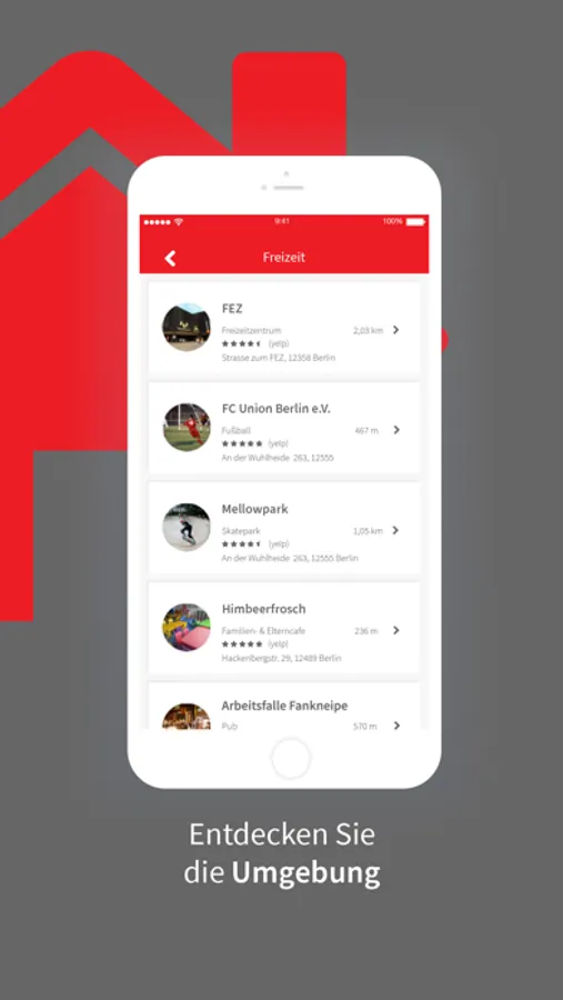Informieren Sie sich z.B. über Geschäfte, Ärzte, Erstatten und über die Öffnungszeiten in Ihrer unmittelbarer Umgebung.