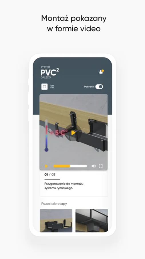 Rejestrując się w aplikacji masz możliwość pobrania video i odtwarzania nawet w trybie offline w sytuacji, kiedy na placu budowy nie masz dostępu do Internetu.