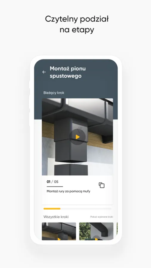 Podział na etapy i kroki montażu znacznie ułatwia montaż i skraca czas pracy.