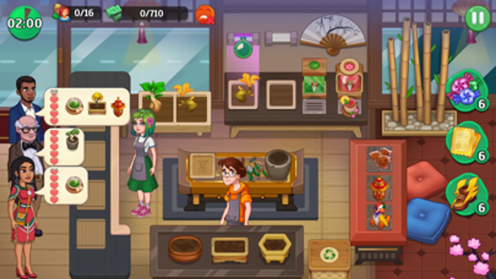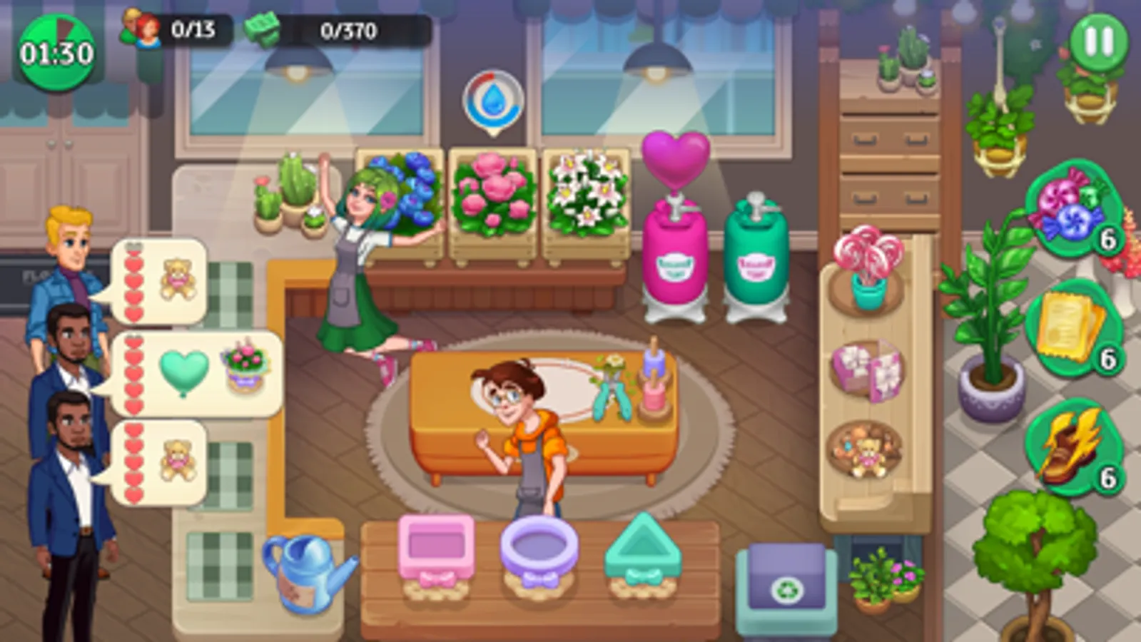 Being the boss isn't easy! Use boosters to help with difficult levels and progress from running a small shop on your own to owning the fanciest flower shop in the country!
