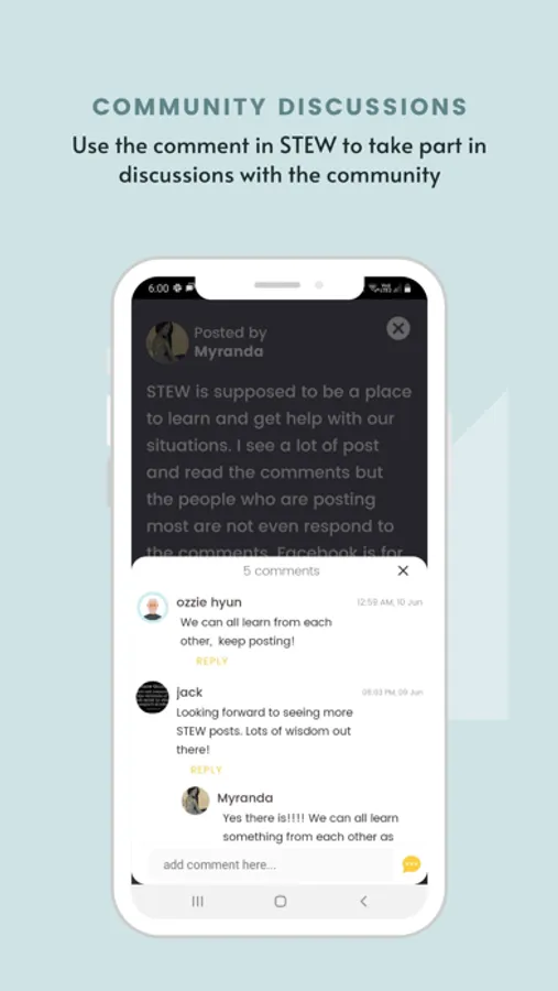 •Share thoughts, experiences, wisdom, support, resources, information, answers