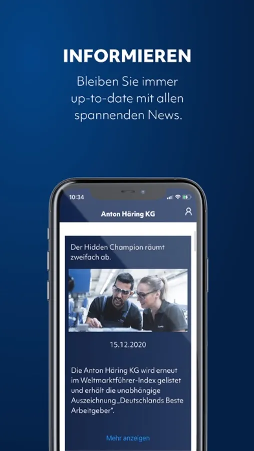 Für Mitarbeiter*Innen der Anton Häring KG gibt es zusätzlich einen separaten Login-Bereich für die interne Kommunikation. So verpassen Sie nichts mehr - denn die wichtigsten Infos erhalten Sie direkt aufs Smartphone.