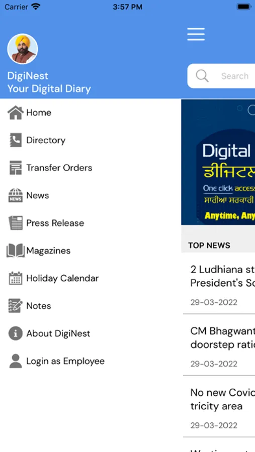 DigiNest Mobile Application is being developed by Department of Information and Public Relations in collaboration with Digital Punjab Team under Department of Governance Reforms and Public Grievances. The application aims to provide the citizens with a digital access to the Punjab Government officers.