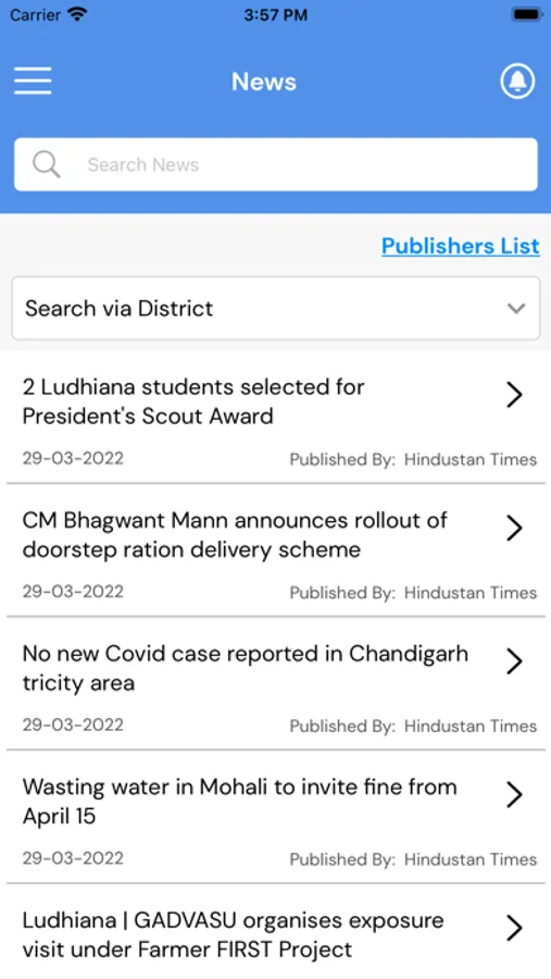 The News section provides Digital News to the citizens. The citizen can browse the news basis district of choice or search using keywords.