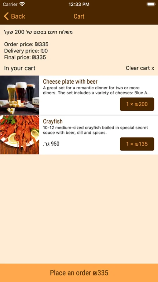 For the Krayot area - with a minimum order of NIS 150 or more - NIS 25, from NIS 200 and up - NIS 20.