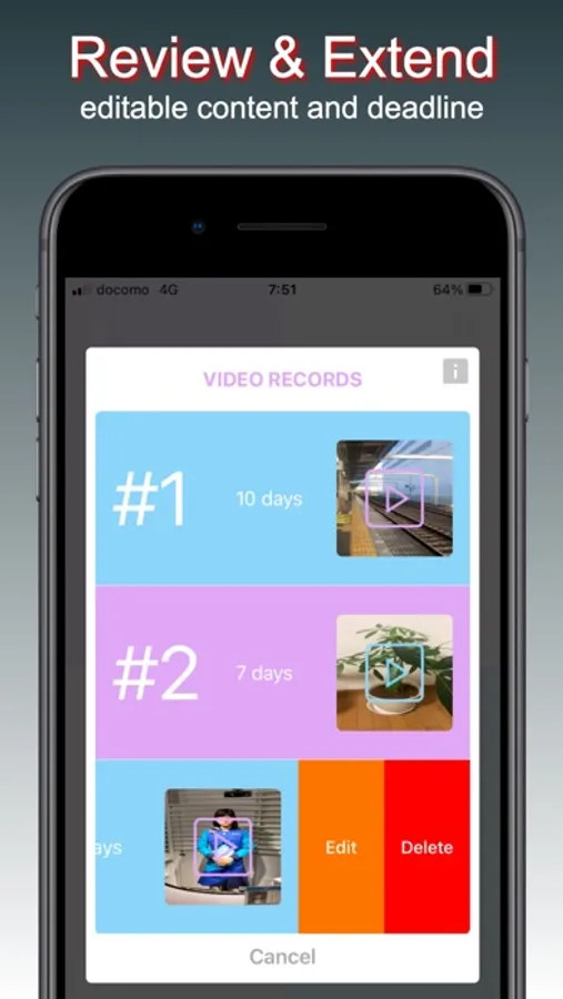 ⁃ on next day after deadline people whom you addressed your messages will receive 1) email with content of stored text message, or 2) email with access link to stored video message.