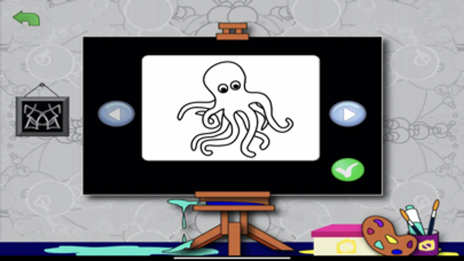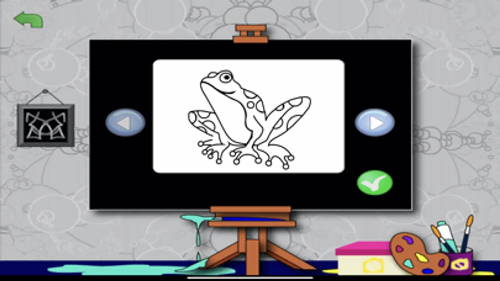 There are two simple painting modes - freehand and tap to fill - and they can be combined to fill in your freehand paintings. You can also create a fun animation effect once the painting is completed. Pressing the Back arrow chooses the blank canvas, and each of the 4 modes of difficulty features a smaller brush.