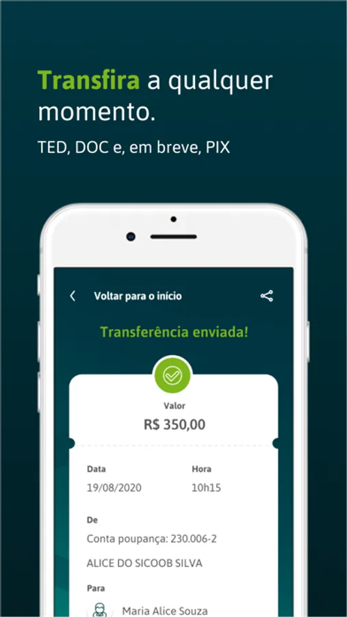 Realizar transferências para outras instituições (TED e DOC) e para contas do Sicoob.