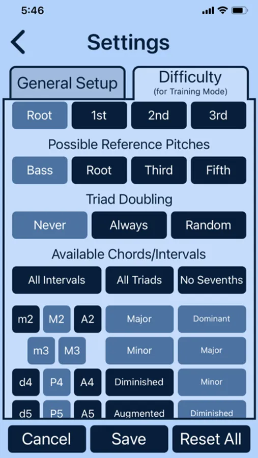 - Dozens of difficulty settings including full customization of the available scales, intervals, chords, and inversions