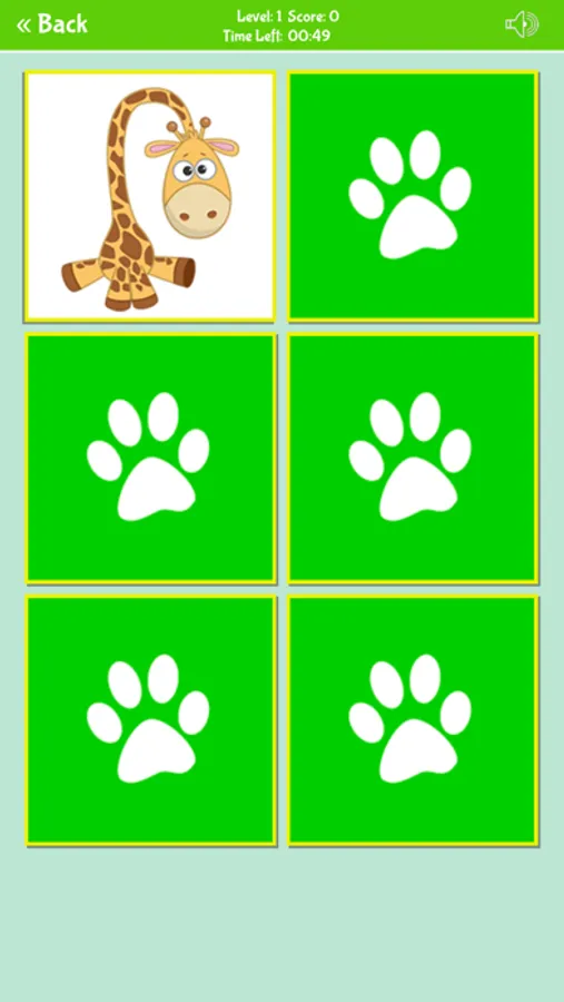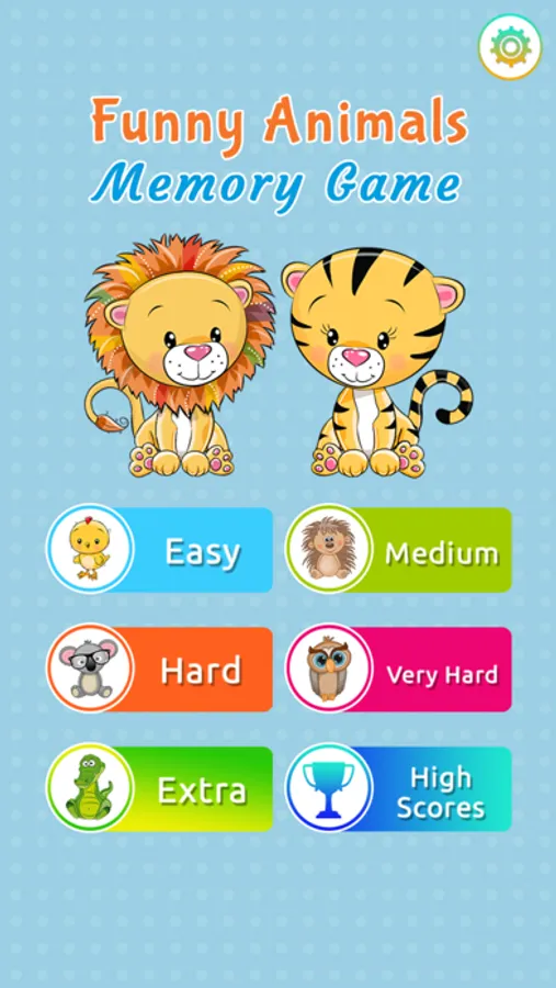 Memory matching game with cute images of funny animals that helps to improve your memory.