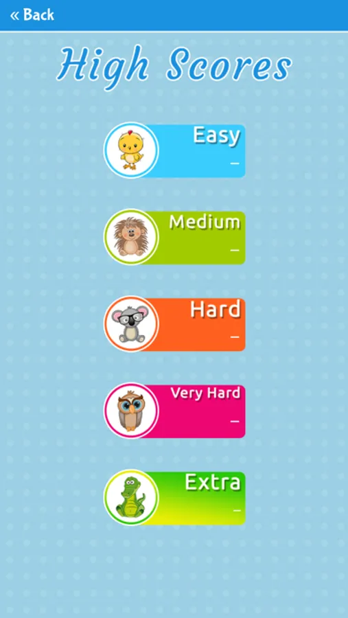 - 5 levels (easy, medium, hard, very hard and extra mode)