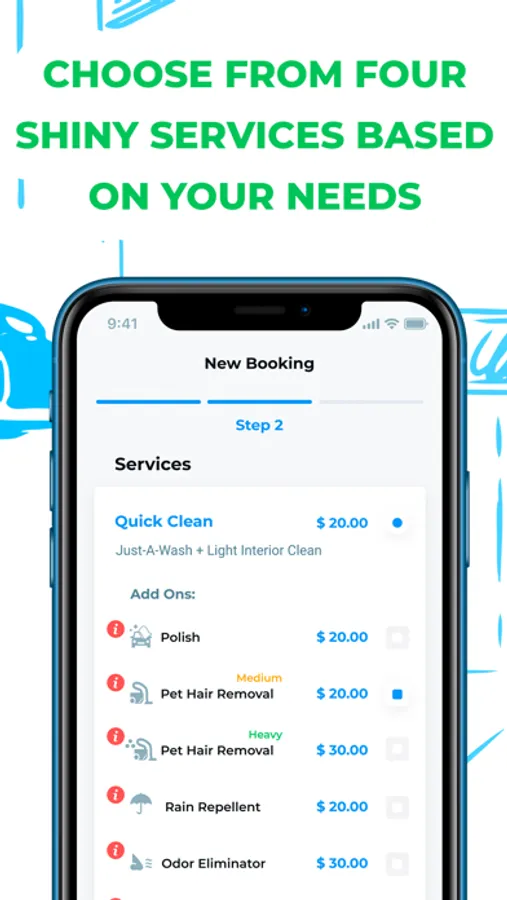 Here’s how it works -- just go to our website or app and let us know where, when, and how you’d like your car washed. A Shiny technician will come to your car and wash it right where it's parked. A clean car has never been so easy.