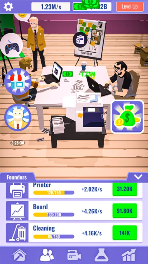 Help founders, receive investments and funding, raise rounds of money, create departments, hire more people, and improve the office.