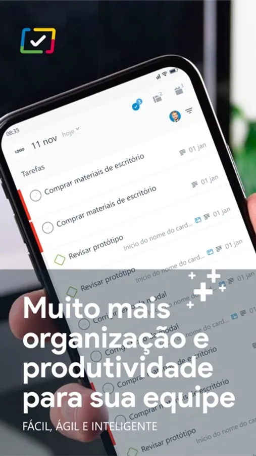 - Crie tarefas e delegue para um responsável. É possível inserir descrição, tags, data de entrega, prioridade e vinculo à cards.