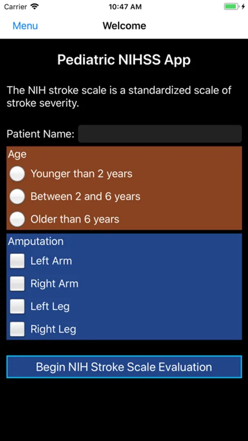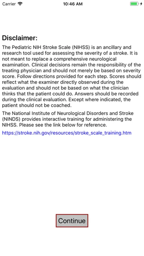 The NIHSS is an ancillary and research tool used for assessing the severity of a stroke. It is not meant to replace a comprehensive neurological examination. Clinical decisions remain the responsibility of the treating physician and should not merely be based on severity score. Follow directions provided for each step. Scores should reflect what the examiner directly observed during the evaluation and should not be based on what the clinician thinks that the patient could do. Answers should be recorded during the clinical evaluation. Except where indicated, the patient should not be coached.