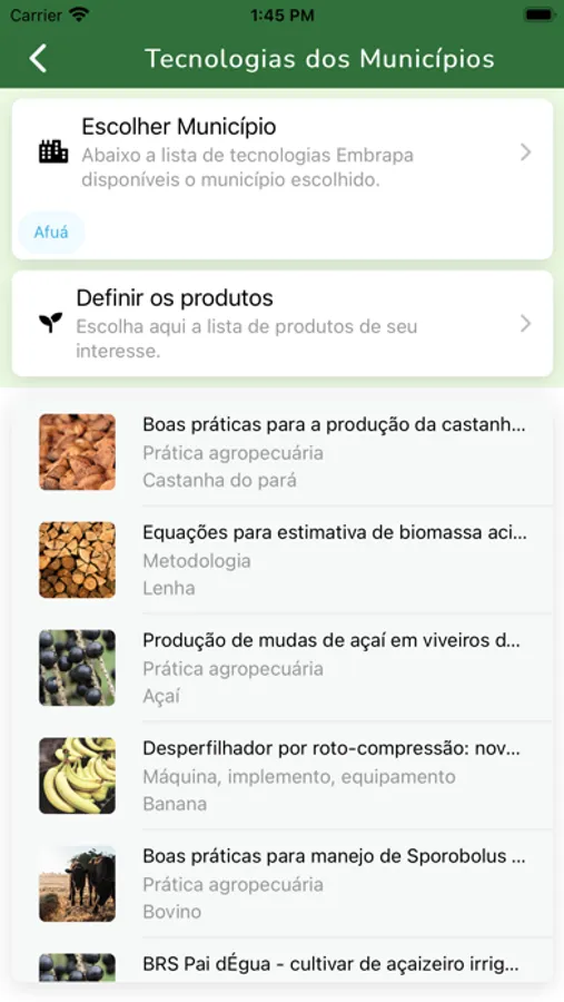 Busque tecnologias por produto agropecuário ou por município do bioma Amazônia;