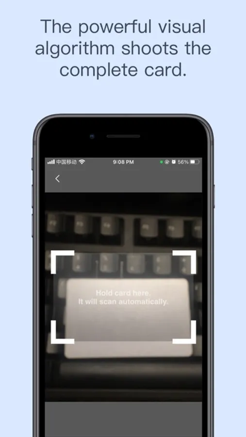 Based on the visual algorithm scanning technology, the card scan can be realized on the mobile phone to generate a scanned copy of the card without the need for networking.