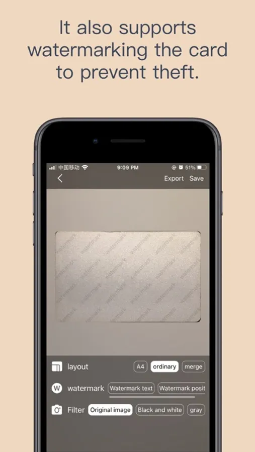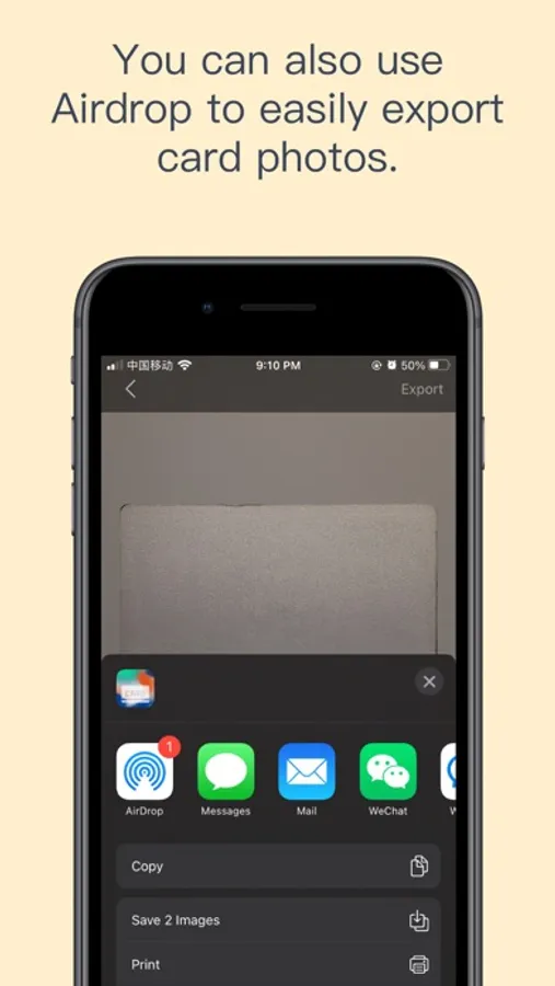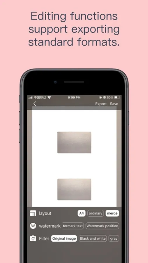 The scanned card can be exported to A4 format, add black and white filters, etc., and finally can be exported or stored in an album using Apple's encrypted transmission technology, which is convenient for daily use.
