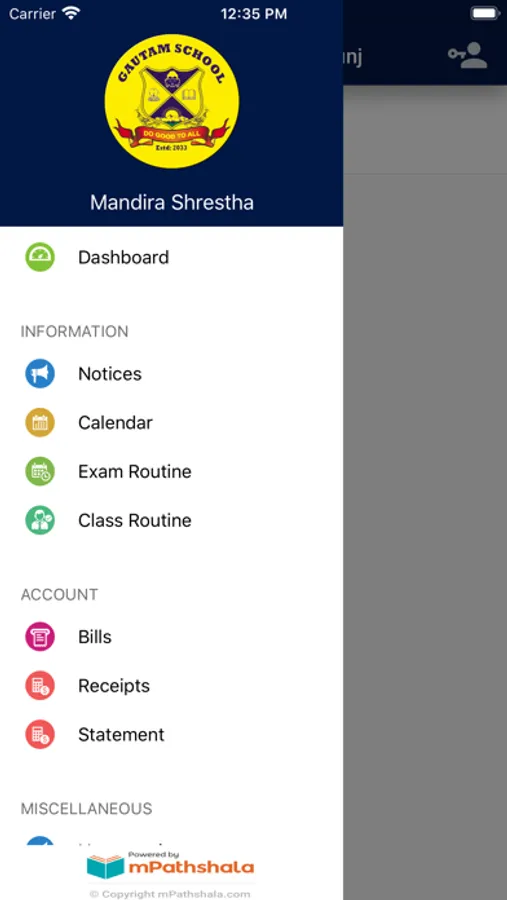 Parents can now view information maintained by the school about their children through the app. This information includes: class/exam routines, school calendar, homework, attendance records, progress reports, bills, receipts, etc. They can also send message to the school as well as receive regular communication from the school.
